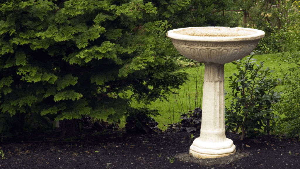 - Drain and empty the birdbath.
