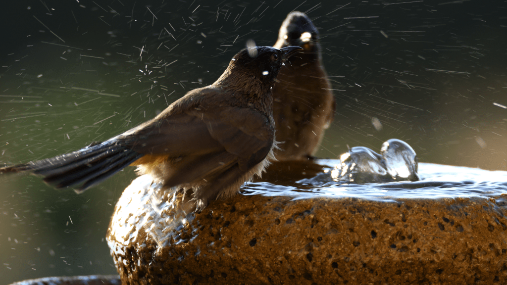 - Opt for partial or dappled shade to regulate water temperature and create dynamic shadows and sparkles that attract birds.