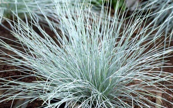 ‘Elijah Blue’ has very fine, rolled, intensely ice-blue leaves that curl up into small cushions and turn greener in the winter. It produces narrow, bristly blue-green flower plumes that turn golden brown in the summertime.