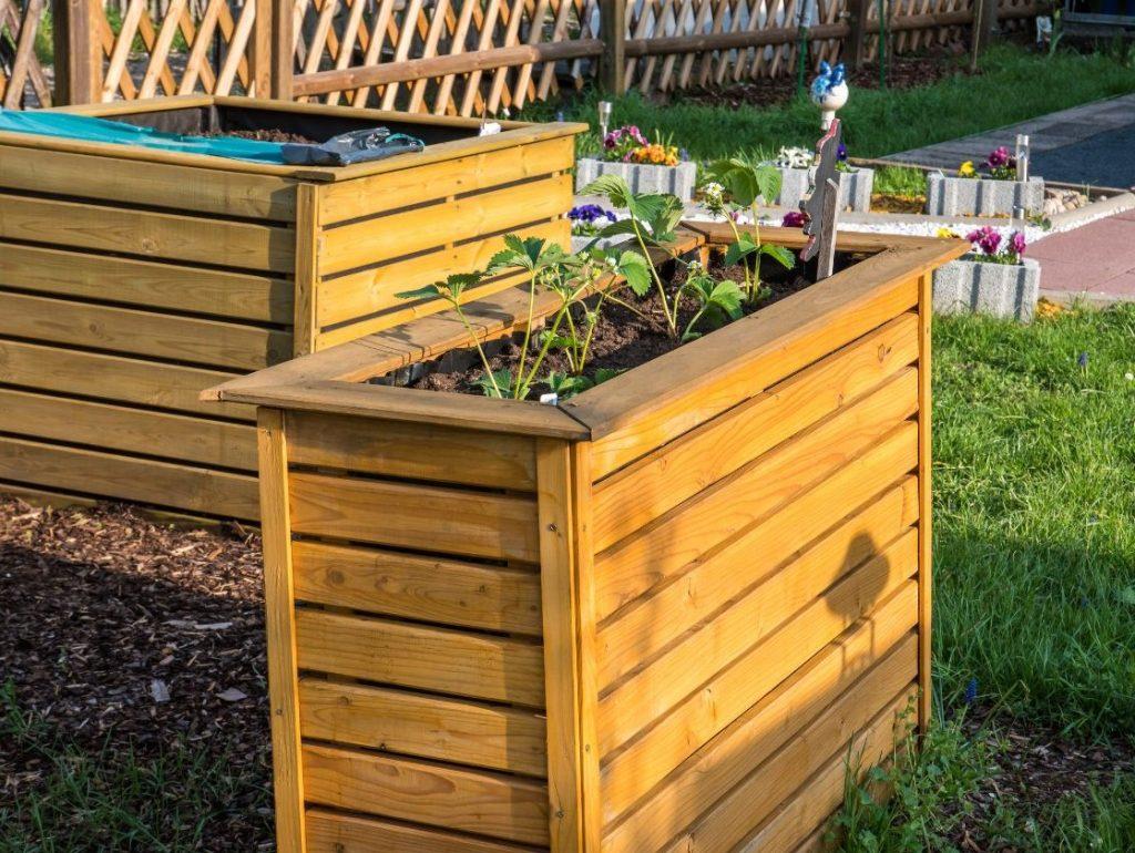 A popular option that’s great if you have plenty of space to work with, raised beds are large raised containers (typically made from wood) that sit in your garden and allow you to plant larger vegetable crops. They have good drainage (but more on that later) and are easy to manage compared to traditional gardens that require a lot of weeding, etc.