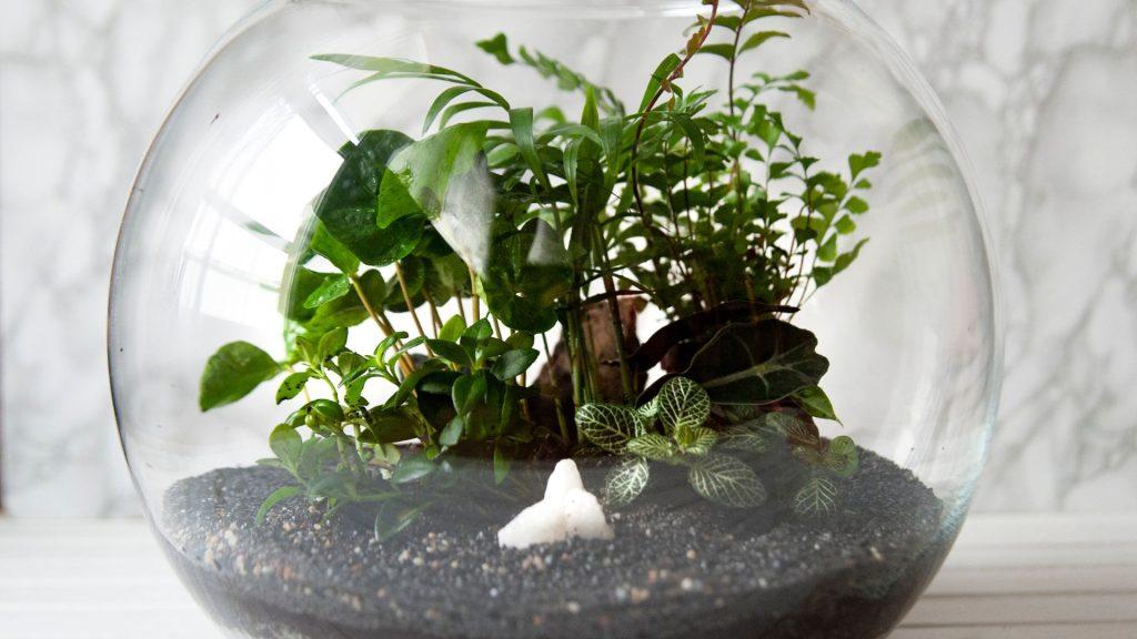Along with the type of plant, think about the size and growing speed of the plants you’re using. If a plant will grow particularly quickly, make sure it’s small enough to have a lot of room to grow. Larger plants can make a great statement in a terrarium as long as they won’t grow too quickly, or you are prepared to open the terrarium to prune them when necessary.
