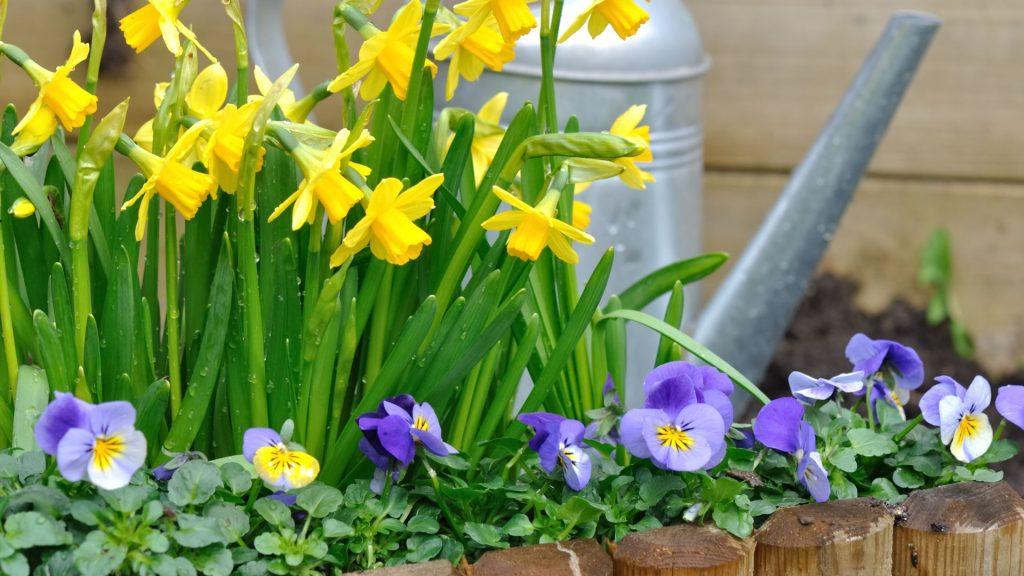 If you’re styling your spring containers with specific colour combinations, here are some gorgeous spring-flowering plants for pink, orange, yellow, blue, white, or purple displays.