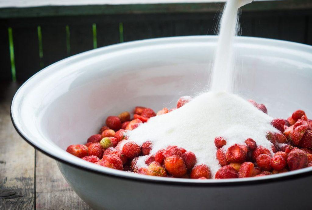 - Wash and drain the strawberries, placing them in a large bowl. Add the sugar and the lemon juice and gently stir. Cover the bowl with a tea towel and let it sit overnight.