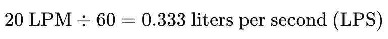- Litres per Second: Divide the flow rate in LPM by 60.