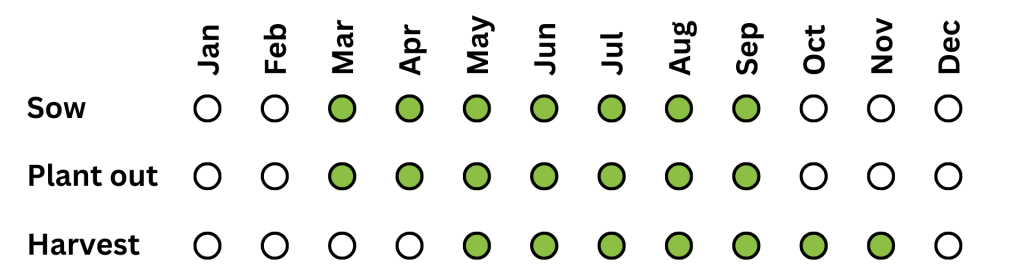 Early and late sowings might require security from the cold, utilising cloches or plastic tunnels.