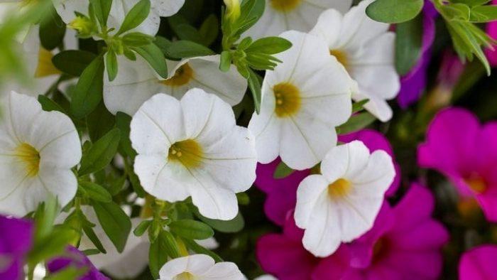 - Bengolias add a delicate, contrasting flower and leaf texture to the basket, complementing the bold petunias.