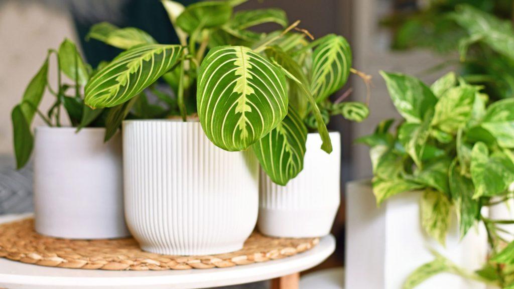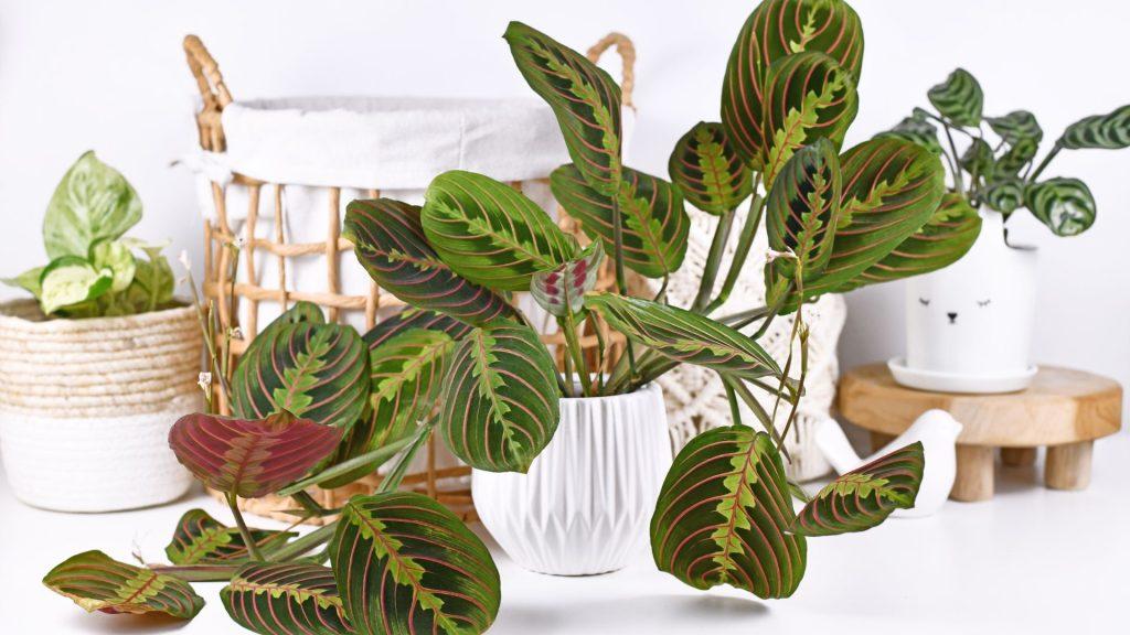 Prayer plants are one of the most iconic tropical houseplants, known for the striking colours and patterns of their leaves. Botanically known as Maranta, these beauties get their common name from the movement of their leaves. They are lower during the day and rise at night, resembling praying hands.