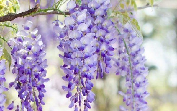 To encourage flowering, leave your young wisteria unpruned until it has completely covered the wall or garden structure.