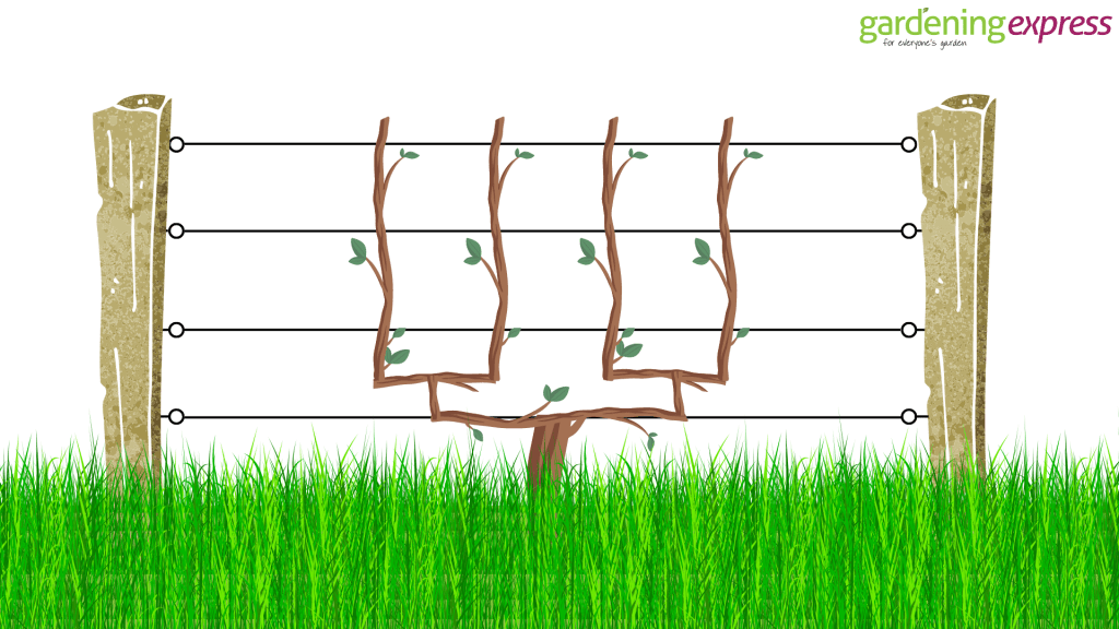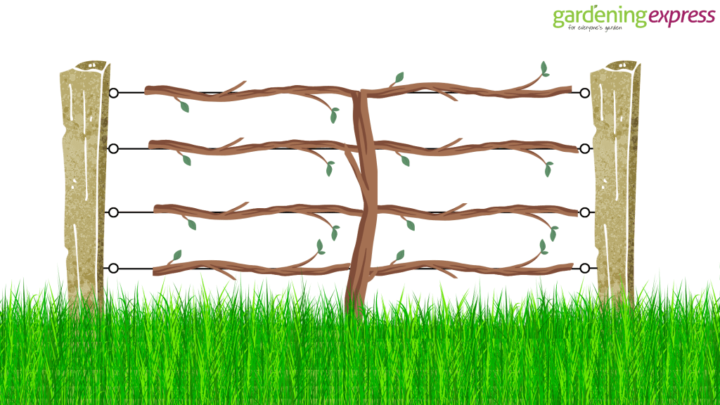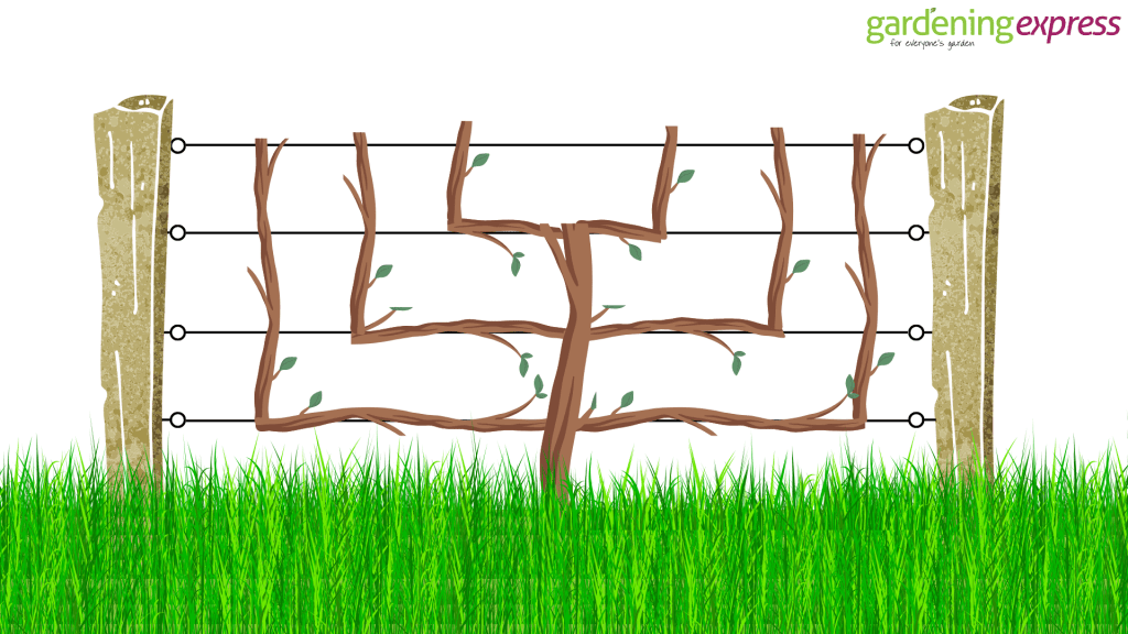 - Secure branches and trunks to the trellis using galvanised wire or plant ties.