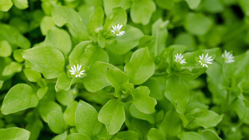 A mat-forming annual that readily roots itself, chickweed has small green leaves and white starry flowers. It produces a high volume of seeds over a prolonged season.