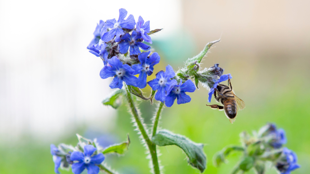 A hairy-leaved perennial, green alkanet can grow up to 80cm tall and showcases bright blue flower clusters in late spring and early summer. It persists through brittle tap roots and spreads via seeds.