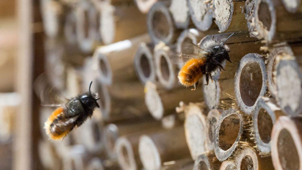 Different solitary bees nest in different ways, so there are a few techniques you could use to attract them. Some of them nest in holes in wood, walls, and plant stems – these are cavity-nesting bees. Insect hotels are great for these bees, but you could also work some DIY magic to give them some shelter. You could drill holes into any old pieces of wood, all different sizes and facing in different directions. Make sure they’re slightly downturned so they don’t fill up with rainwater.