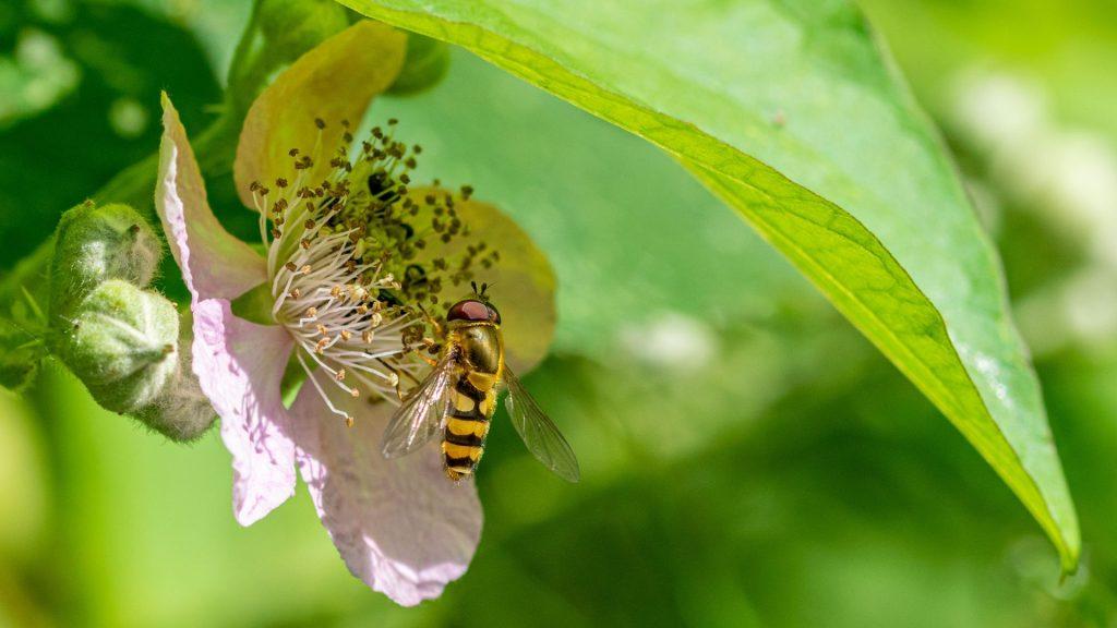 Just like moths, you can attract hoverflies by providing for their young and the adults. Hoverfly larvae are often predators of sap-sucking insects like aphids and whiteflies. The larvae help to control these pests, so tolerating a small population of them will provide food to support hoverflies.