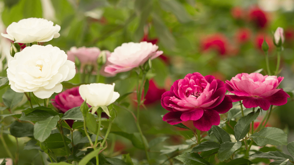 - Include climbing and rambling roses. By laying the stems horizontally, you can increase flower production.