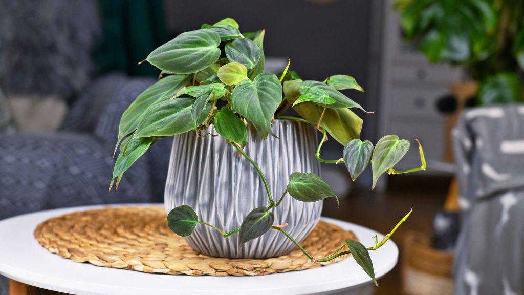 2. Philodendron Scadens Micans: This trailing plant is known for its velvety, dark green leaves.