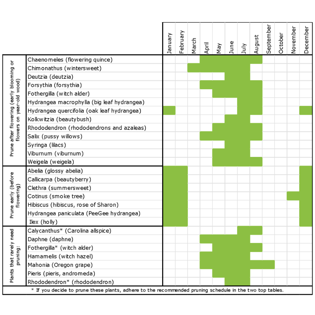 - Cut back spring-flowering shrubs, such as forsythia and lilacs, after they finish blooming.