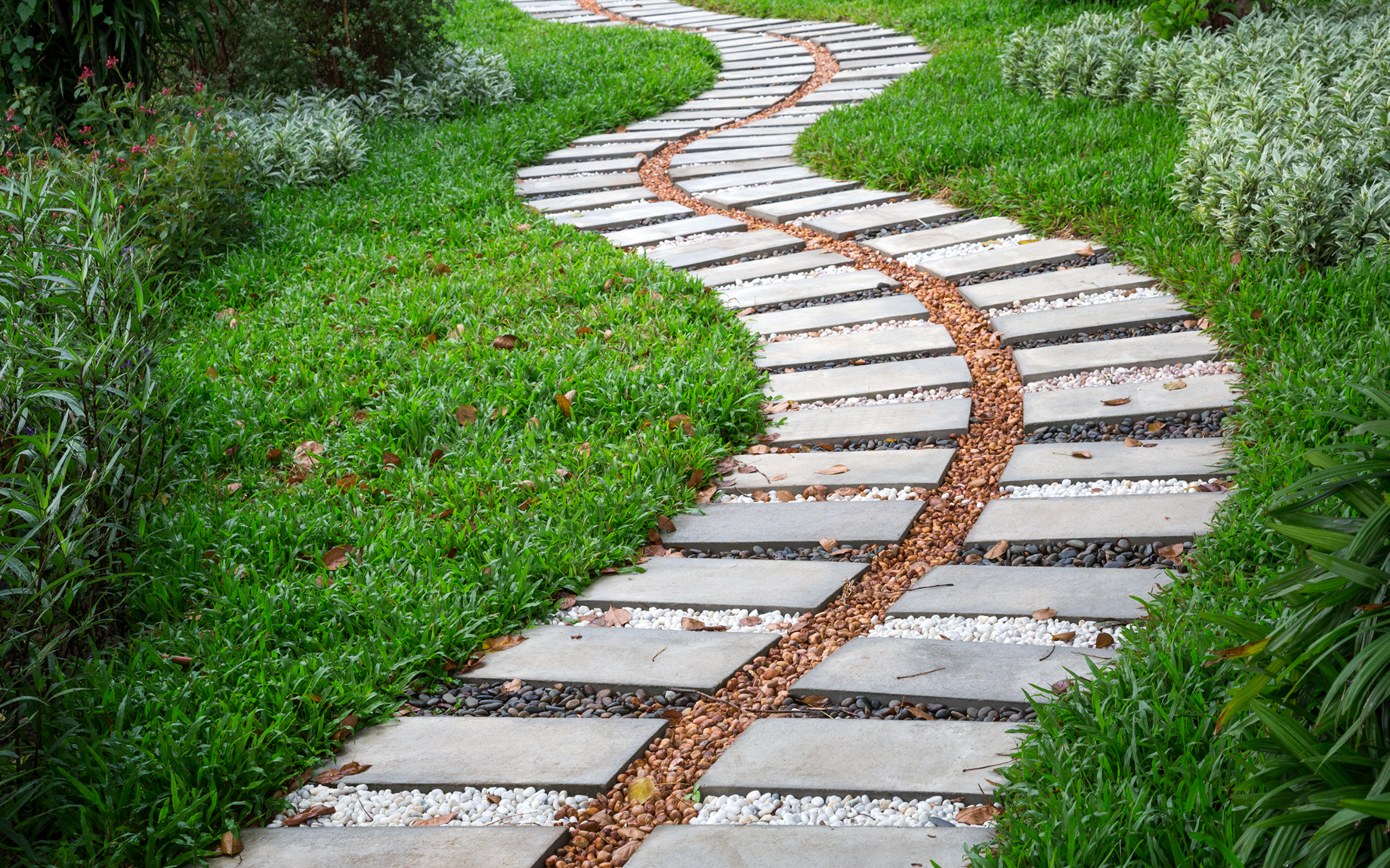 Using stepping stones to create a winding path leading to a garden oasis can add more charm and character to your garden. Winding paths made from softer materials can look inviting and less harsh in a relaxed garden design. They also work perfectly if you plan to create a cottage-style garden.