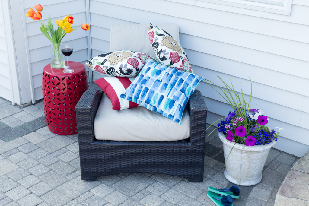 When designing a relaxing garden, consider what colours and textures you would like around the garden and patio. If your garden already has patterns or features of colours, incorporate accessories and outdoor pillows to add a subtle variation of those colours.