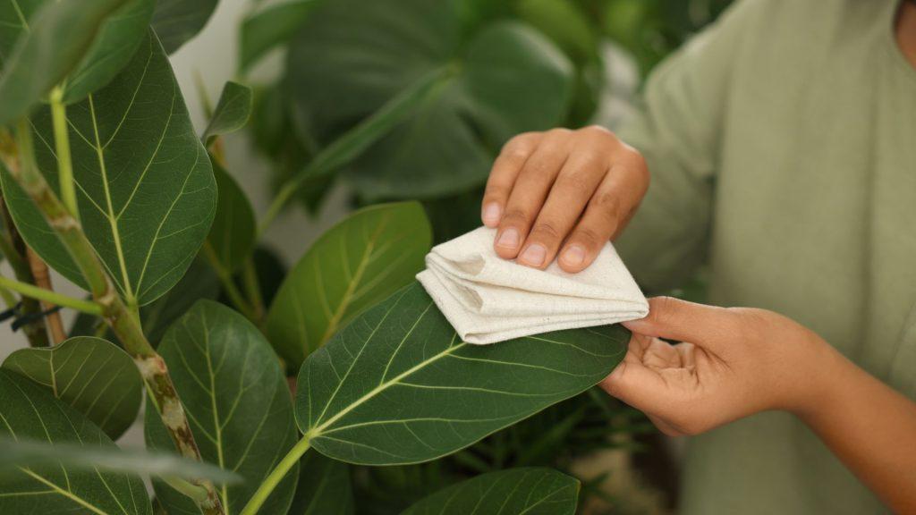 To clean your plants, simply wipe down the leaves and stems with a damp cloth or tissue. This will remove dust and give the plants a bit of a humidity boost at the same time.