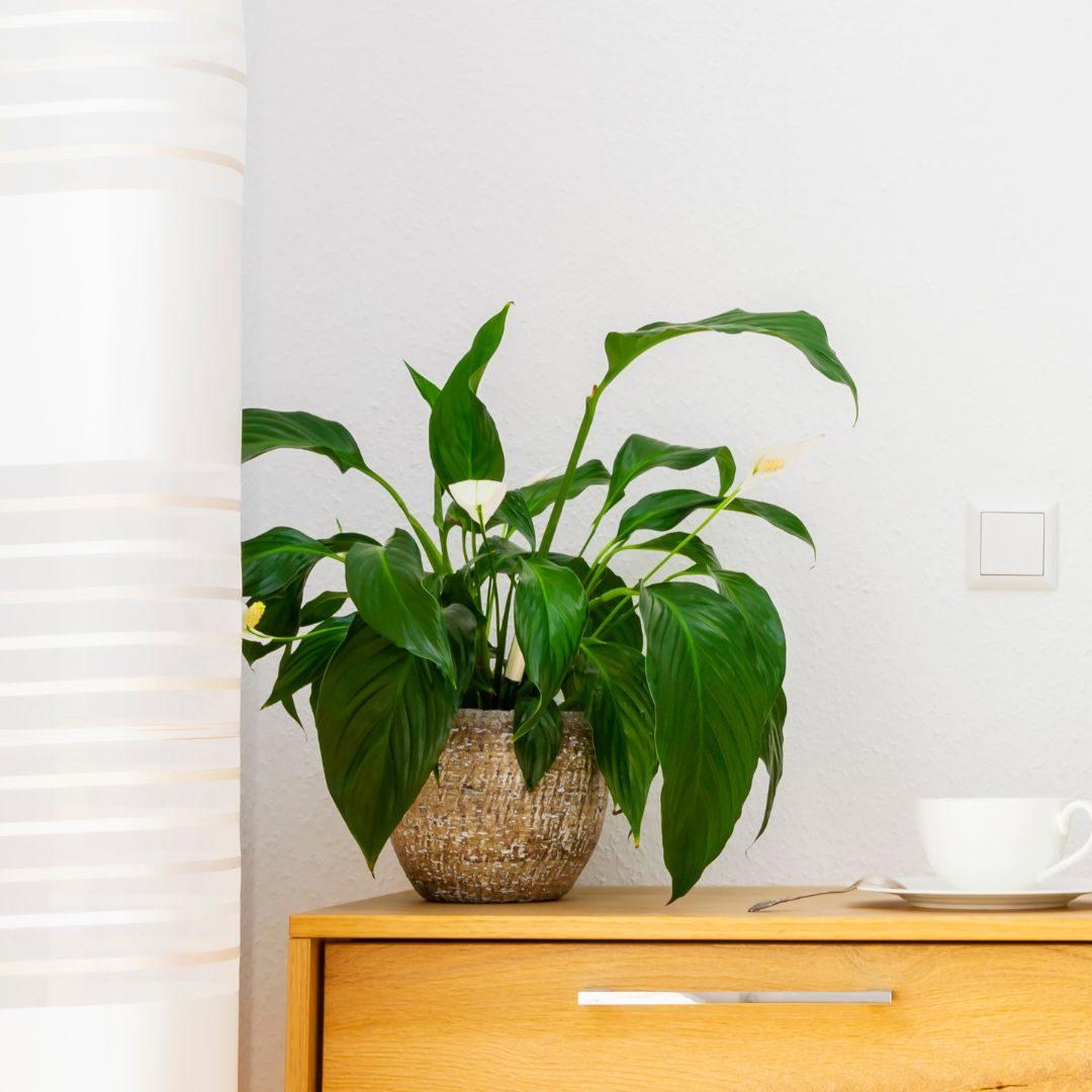 Peace lilies are a well-known easy to care for houseplant. Their lush green foliage and bright white flowers are sure to brighten up your home.