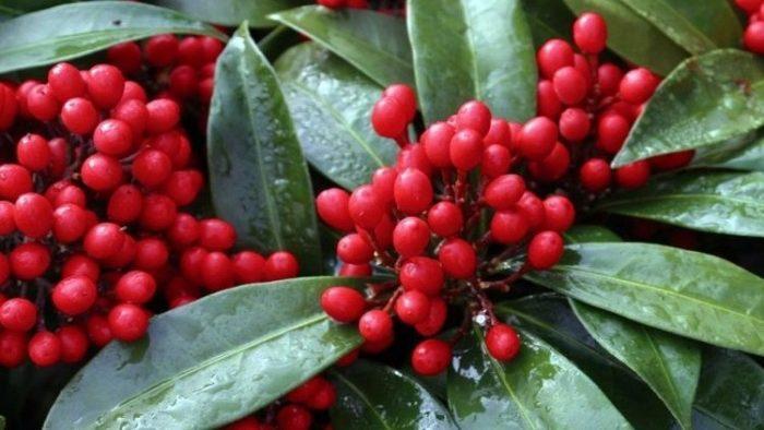 Skimmia Japonica actually flowers in spring. However, during the winter, it produces prominent flower buds that give a winter garden a lot of interest. During the winter, the beautiful red berries of other skimmia are produced. Most skimmias are either male or female, so you’ll need to grow two different varieties if you want berry production. Skimmia Japonica care guide.